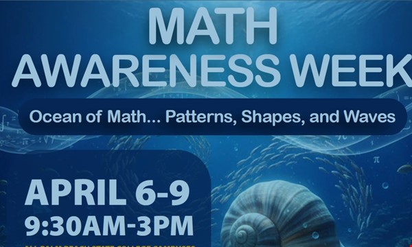 Math Awareness Week: April 6 - 9, 2026 Get ready to dive into Math Awareness Week, April 6 - 9, 9am-3pm!