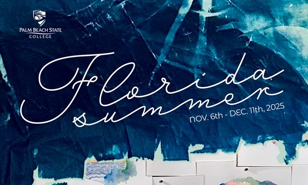 Florida Summer - Opening Reception As an artist and art professor of both drawing, sculpture and foundational design at PBSC, Kristin Miller seeks to show the progression and experimentation of works inspired by the Florida landscape over time. "Florida Summer" abstractly captures light and reflection using drawing, watercolor, embroidery, cyanotypes and mixed media works on paper. Observational, layered drawings show the power of nature - our native plants and ocean shore providing an armature of quiet curiosity and capturing of diaphanous light. New work, "Sea/Sky: A Meeting Place" includes a paper installation created by the repetitive daily paintings of cloudscapes. From
