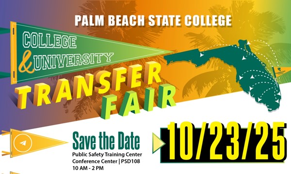 - College & University Transfer FairCollege & University Transfer Fair Meet college transfer reps! This is your chance to connect with your next college or university. Meet transfer representatives face-to-face from colleges and universities and ask them questions about programs and get the latest info on how to transfer. This event is open to all PBSC students. We ask that you sign in and RSVP in Engage to let us know you're coming. For more information, please call 561-868-3000 Lake Worth Campus - PSD108 (Public Safety Training Center) Campus Map & Directions From to at Lake Worth Campus - PSD 108 (Public Safety Training Center).