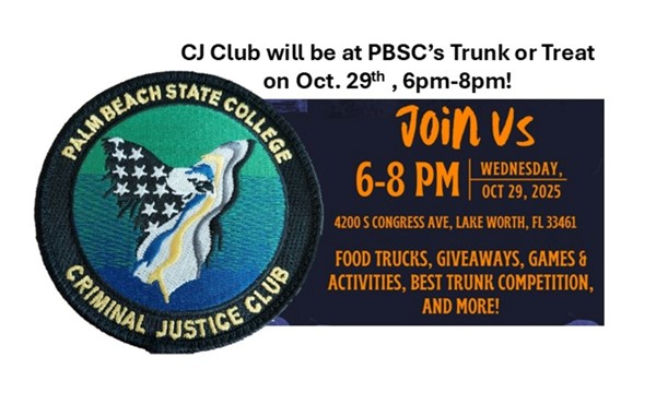 - CJ Club at the PBSC Trunk or TreatCJ Club at the PBSC Trunk or Treat Criminal Justice Club will have a car at the Trunk or Treat! Club members will help hand out candy and police stickers. From to at PBSC.